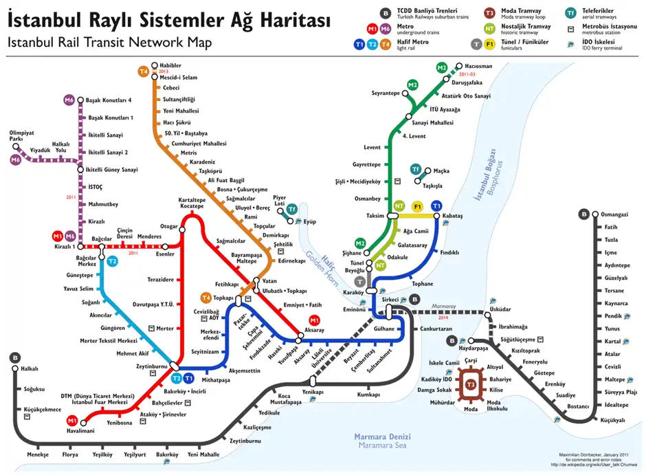Taxis and ride-hailing services (BiTaksi, Uber) are widely available throughout the city.